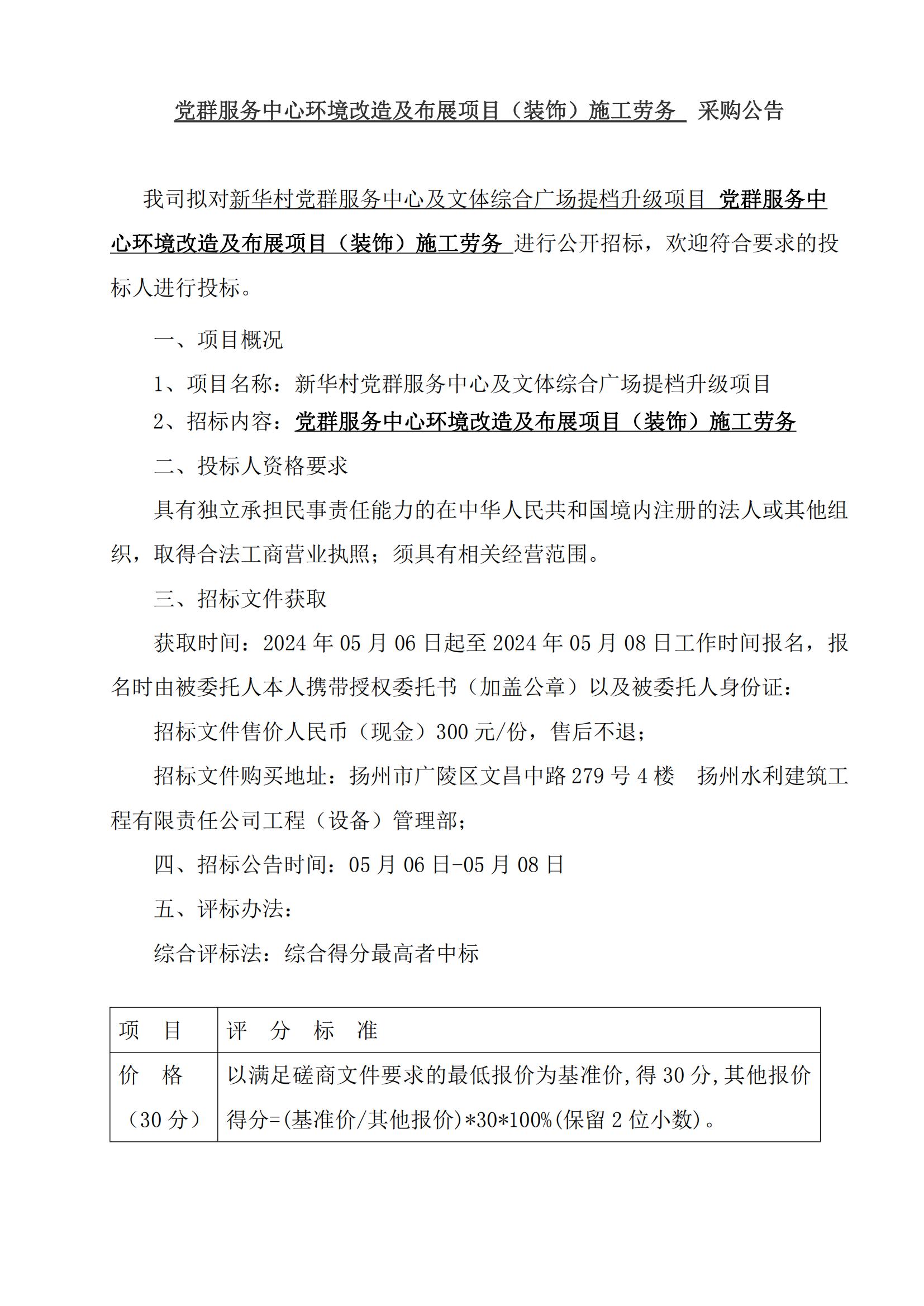 黨群服務(wù)中心環(huán)境改造及布展項(xiàng)目(裝飾)施工勞務(wù)采購公告